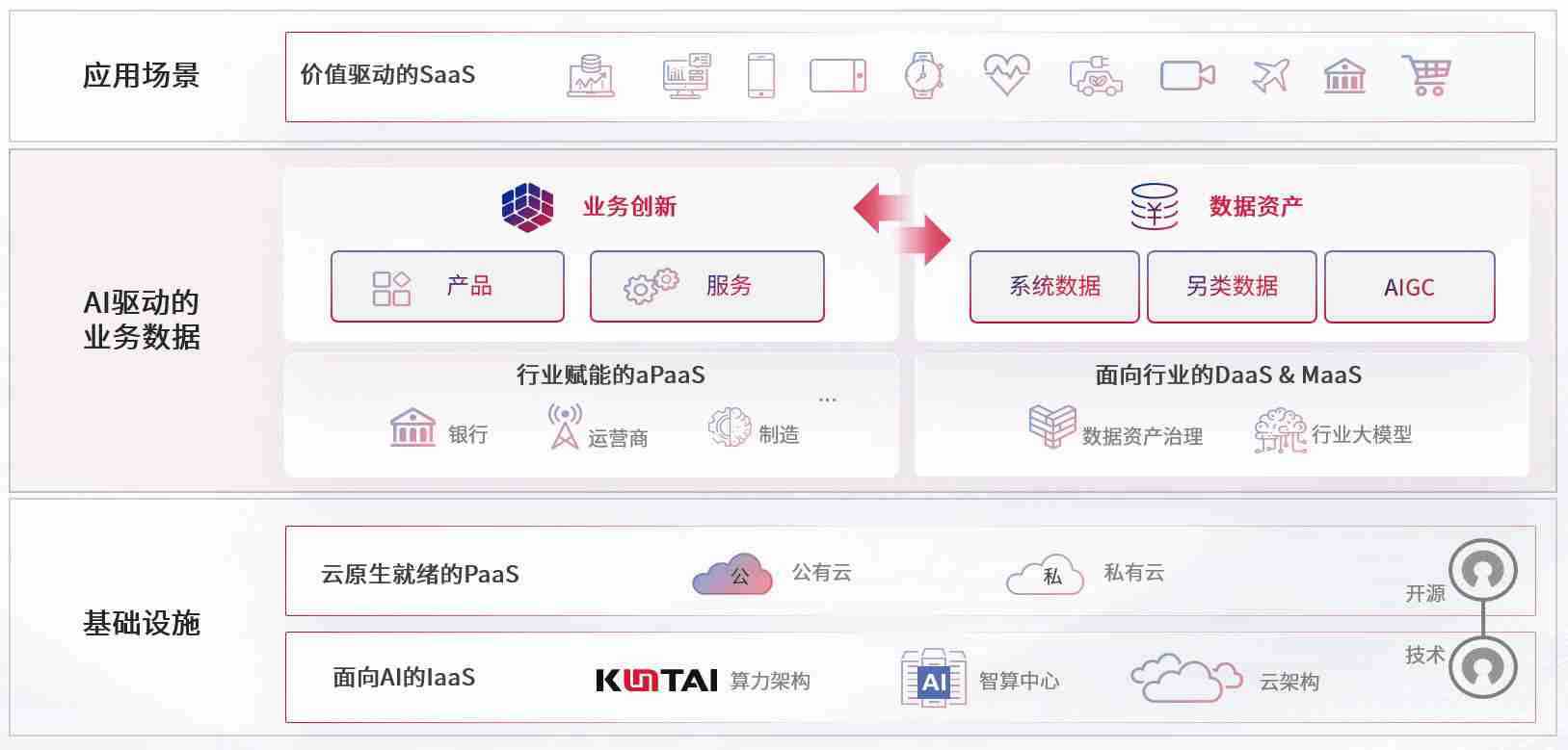 数字时代,,,,围绕企业数字化转型的关键要素,,,z6com尊龙数码开创性的提出数云融合战略和技术体系框架,,,,着力在云原生、、、、数字原生、、AI原生和信创产业上架构产品和服务能力,,,为处在不同数字化转型阶段的快消零售、、、、汽车、、、、金融、、、、医疗、、政企、、教育、、运营商等行业客户提供泛在的敏捷IT能力和融合的数据驱动能力,,,,构建跨界融合创新的数字业务场景和新业务模式,,,助力企业级客户建立面向未来的核心能力和竞争优势,,全面推动社会的数字化、、、智能化转型升级。。